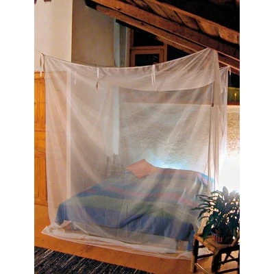 Moskitonetz Hazienda Special von Brettschneider (vormals Lodge Spezial). Aus schwerem und beinahe unverwüstlichem Material hergestellt. Mit Bleiband für die perfekte Auflage auf dem Boden. Speziell für den Langzeitaufenthalt in tropischen Regionen und zum sicheren Schutz vor durch Insekten übertragene Krankheiten. Das Moskitonetz hat keinen seitlichen Eingang, man hebt es kurz an um unter das Netz zu kommen. Ein zusätzlicher Eingang birgt die Gefahr, dass man diesen aus Versehen nicht schließt und somit Mücken und andere Flugwesen in das Netz gelangen können.