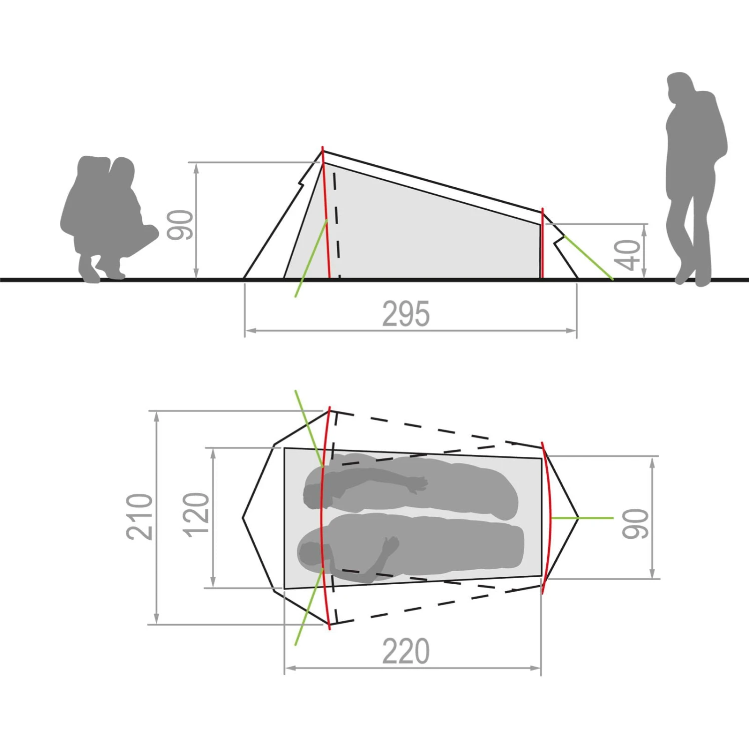 | Maße Außenzelt ca. | 295 x 210 x 95 cm |